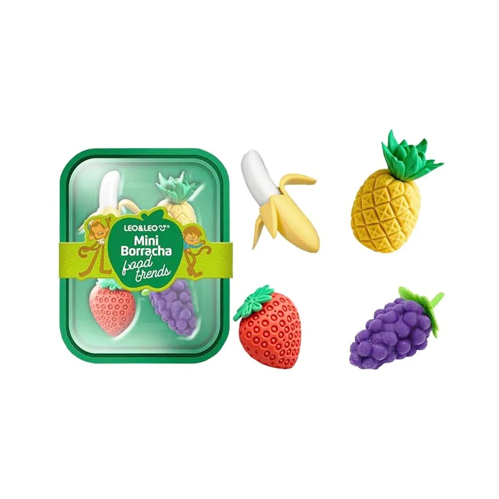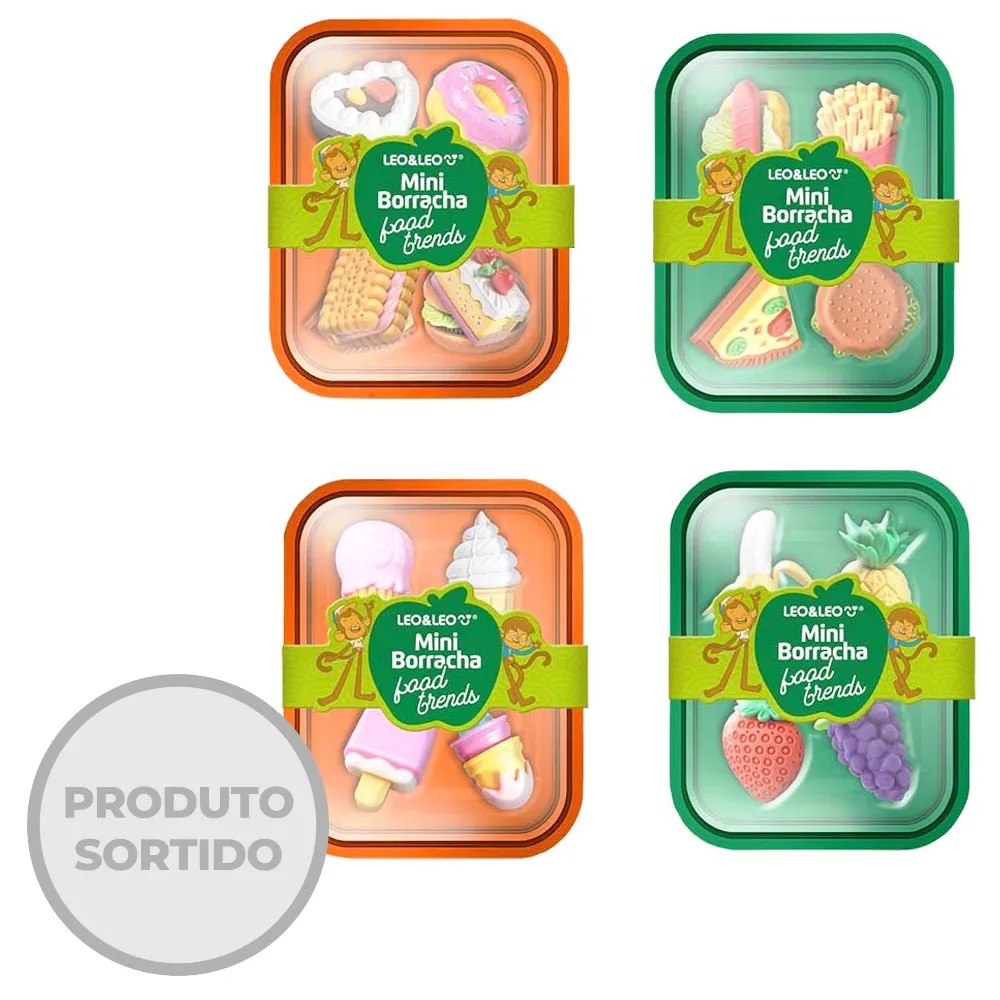 Deixe seu material escolar ainda mais divertido com o kit de Mini Borrachas Food Trends da Leo&Leo! Com formatos criativos inspirados em comidas fofas como frutas, sorvetes, fast food e doces, cada marmitinha acompanha 4 borrachas sortidas supercoloridas, ideais para apagar com estilo. Perfeitas para colecionar, decorar o estojo ou presentear, essas borrachas unem utilidade e diversão em um só produto.
