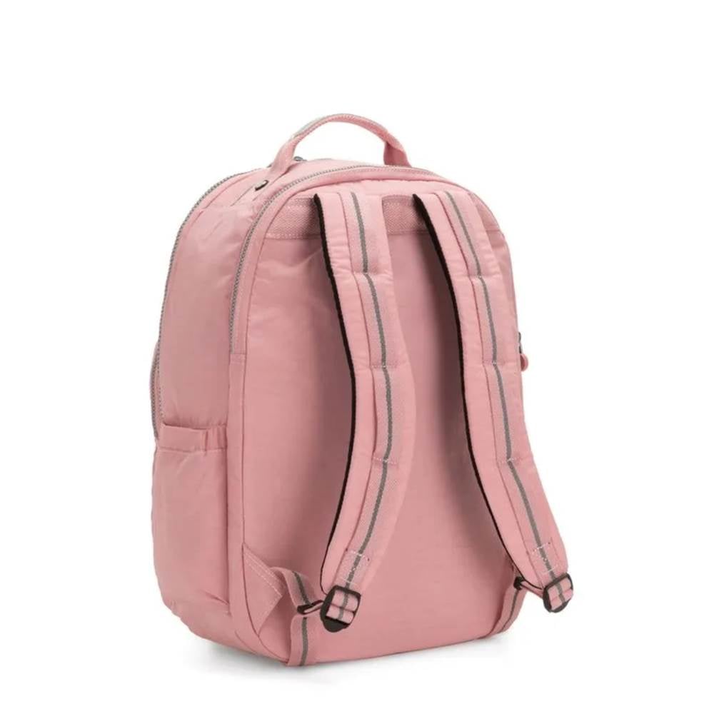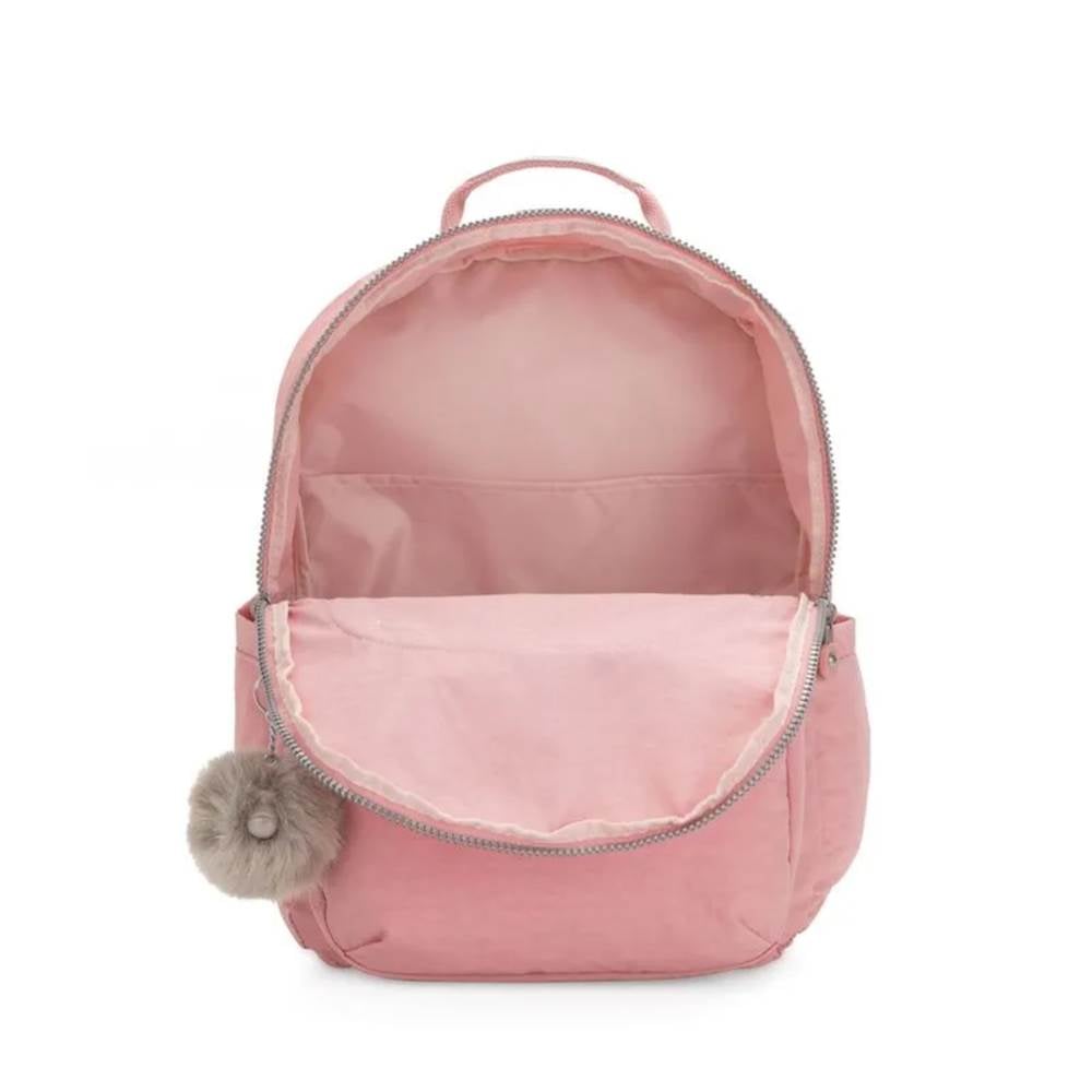 A Mochila Seoul XL Bridal Rose da Kipling combina funcionalidade e estilo em um design encantador e moderno. Com um tom rosa suave e acabamento impecável, ela é perfeita para quem busca praticidade no dia a dia sem abrir mão da elegância.