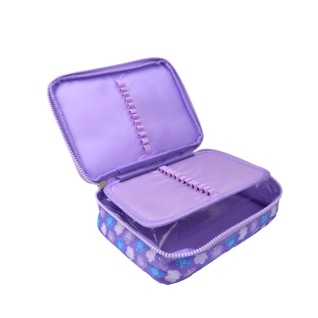 Com formato baú, oferece amplo espaço interno para guardar lápis, canetas, borrachas, marcadores e demais acessórios escolares. O fechamento em zíper com puxador estilizado garante segurança e praticidade no dia a dia.