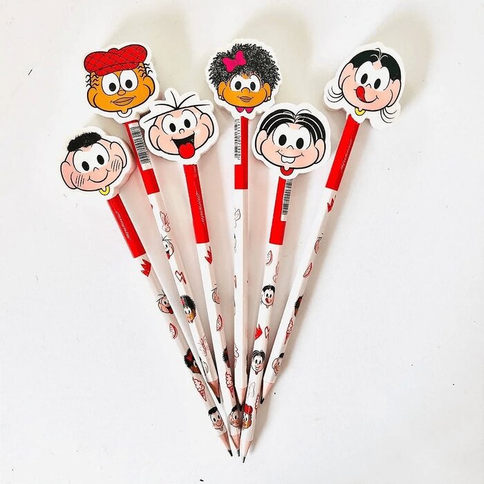 Deixe a hora dos estudos e desenhos muito mais divertida com o Lápis Preto com Borracha Turma da Mônica! Cada lápis traz estampas coloridas e alegres inspiradas nos personagens mais queridos das histórias em quadrinhos, como Mônica, Cebolinha, Magali e Cascão. Com grafite macio e resistente, ele garante traços precisos e suaves, perfeito para escrever, desenhar e fazer anotações no dia a dia escolar. A borracha na ponta facilita as correções e combina com o visual encantador do lápis.