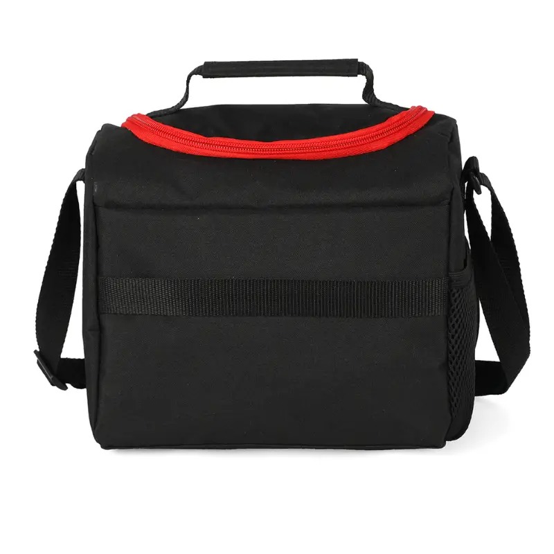 Produzida com material resistente e de fácil limpeza, possui revestimento térmico interno que ajuda a conservar os alimentos por mais tempo, mantendo lanches frescos e protegidos. Conta com compartimento principal espaçoso, fechamento em zíper duplo personalizado, bolso lateral em tela para garrafinha ou pequenos objetos, além de alça de mão superior e alça transversal ajustável, garantindo conforto no transporte.